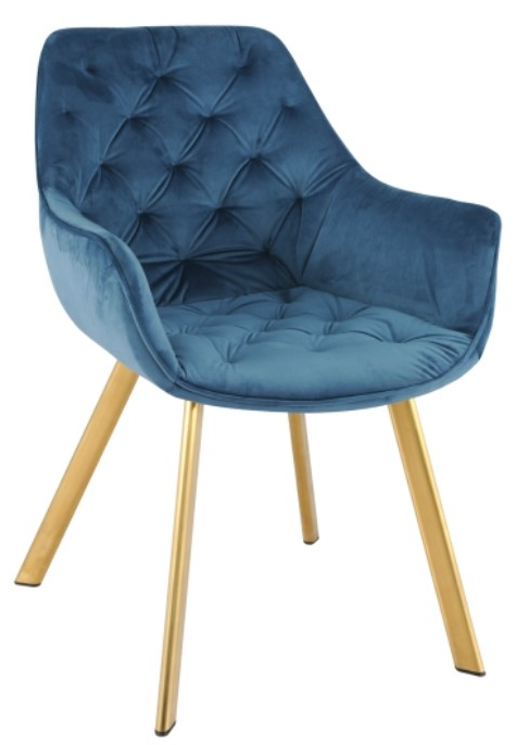 Effortless elegance with an opulent velvet finish gives the Ayami dining chair collection its signature style. Standing atop sturdy metal angled legs with a gleaming gold finish, this dining arm chair's profile has a distinctive Mid-Century Modern flair that partners well with its beautiful blue velvet upholstery for a look that epitomizes retro luxury.Read More