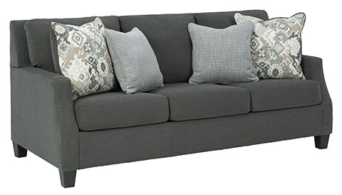 Frame constructions have been rigorously tested to simulate the home and transportation environments for improved durability. Frame components are secured with combinations of glue, blocks, interlocking panels and staples. Seats and back spring rails are cut from mixed hardwood and engineered lumber. Stripes and patterns are match cut. All fabrics are pre-approved for wearability and durability against AHFA standards. Cushions are constructed of low melt fiber wrapped over high quality foam. Constructed with a platform seat foundation. Toss Pillows with Welts.