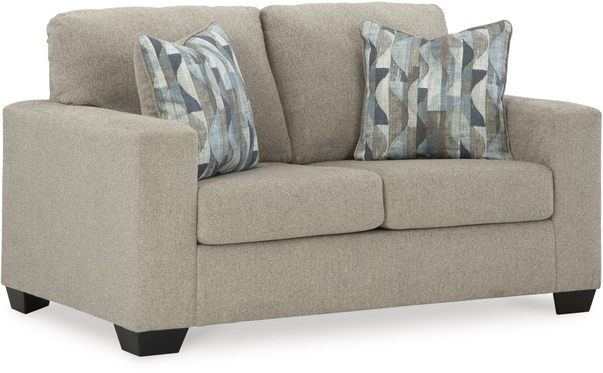 You’re in for a neat treat with this loveseat. Its comfy seats are covered in soft, textural upholstery, and the wide track arms are eager to support your quest for total relaxation. Distressed abstract toss pillows bring a fresh breath of contemporary style while accentuating the loveseat's color.Read More