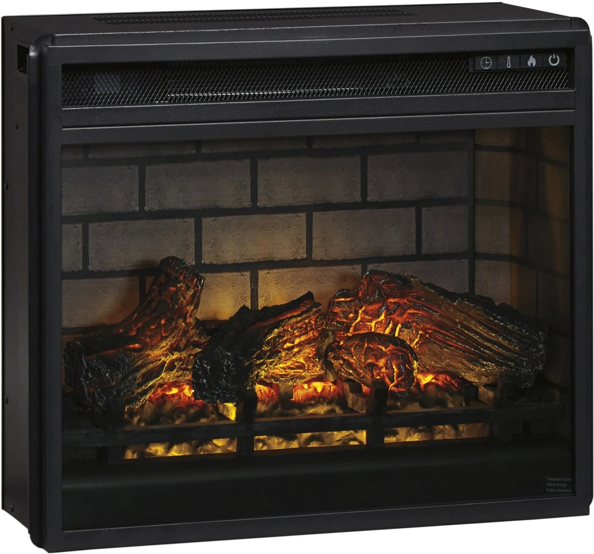 Enjoy the cozy feel of a cracklin’ fireplace without the hassle, maintenance, or cleanup. Available as an addition on select TV stands and entertainment centers, this fireplace insert with faux firebrick surround operates with or without infrared heat and includes a multi-flame feature, 7-level temperature setting, 5-brightness levels, and LED glowing embers effect.Read More