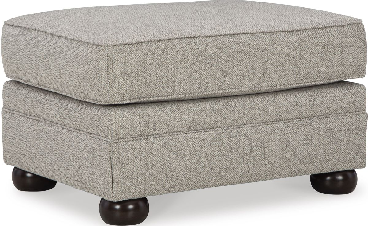 Inspired by the past but rooted firmly in the present, this ottoman complements your transitional seating area. Its versatile upholstery is delightfully detailed for a subtle herringbone effect. Designer touches like bun legs add traditional character. With this ottoman's reliable style and comfort, all you need to do is kick back and relax.Read More