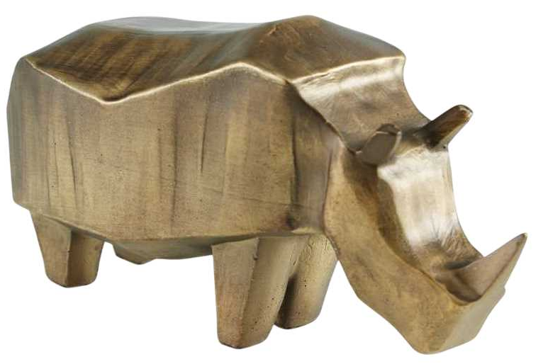 This rhino-shaped sculpture adds a touch of elegant adventure to your decor. Crafted with an antiqued goldtone finish, it’s well-suited for eclectic and contemporary spaces alike. Display it solo as a chic statement, or make it the focal point of a centerpiece arrangement.Read More