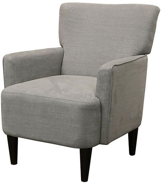 Accent Chair. Track Arm. Upholstered in Light Gray Polyester Fabric. Tight Back and Seat. Tapered Wood Legs in Black Finish. Coordinating Stationary Group 24401. Assembly required for this product.Read More