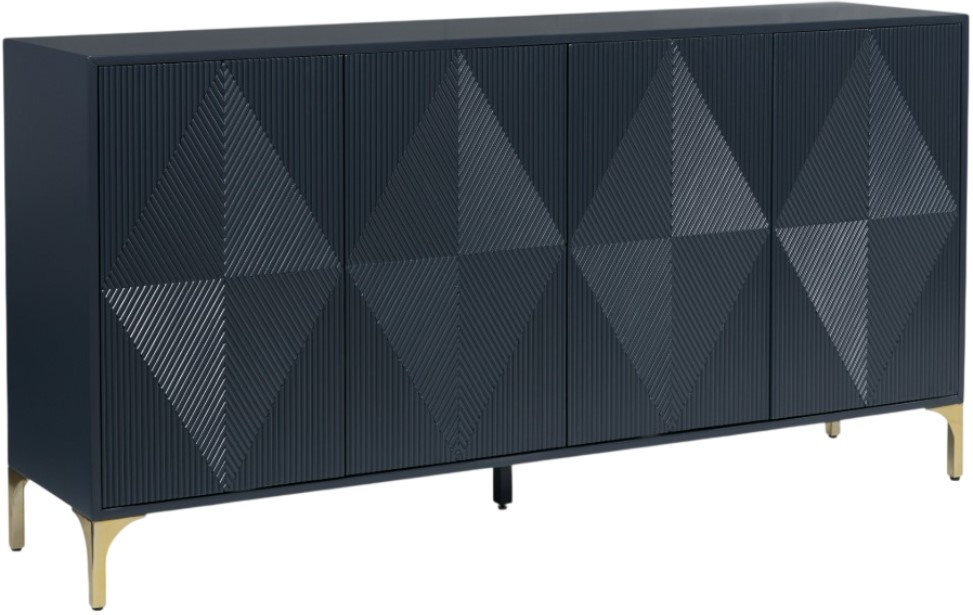 Elevate your aesthetic with the chic design of this accent cabinet. Sleek goldtone legs and striking doors with a geometric pattern infuse contemporary flair wherever you place this piece. Add a dark blue finish, and you've got a stunning showstopper.Read More