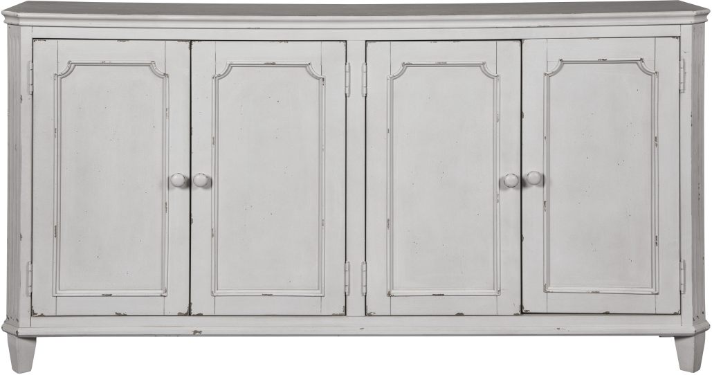 With its distressed vintage paint finish, fluted details and French provincial mouldings, this exquisite cabinet is sure to grace your space in such a très chic way. Adjustable shelved storage is abundantly practical, be it in a dining room, living room or entryway. Assembly required for this product.Read More