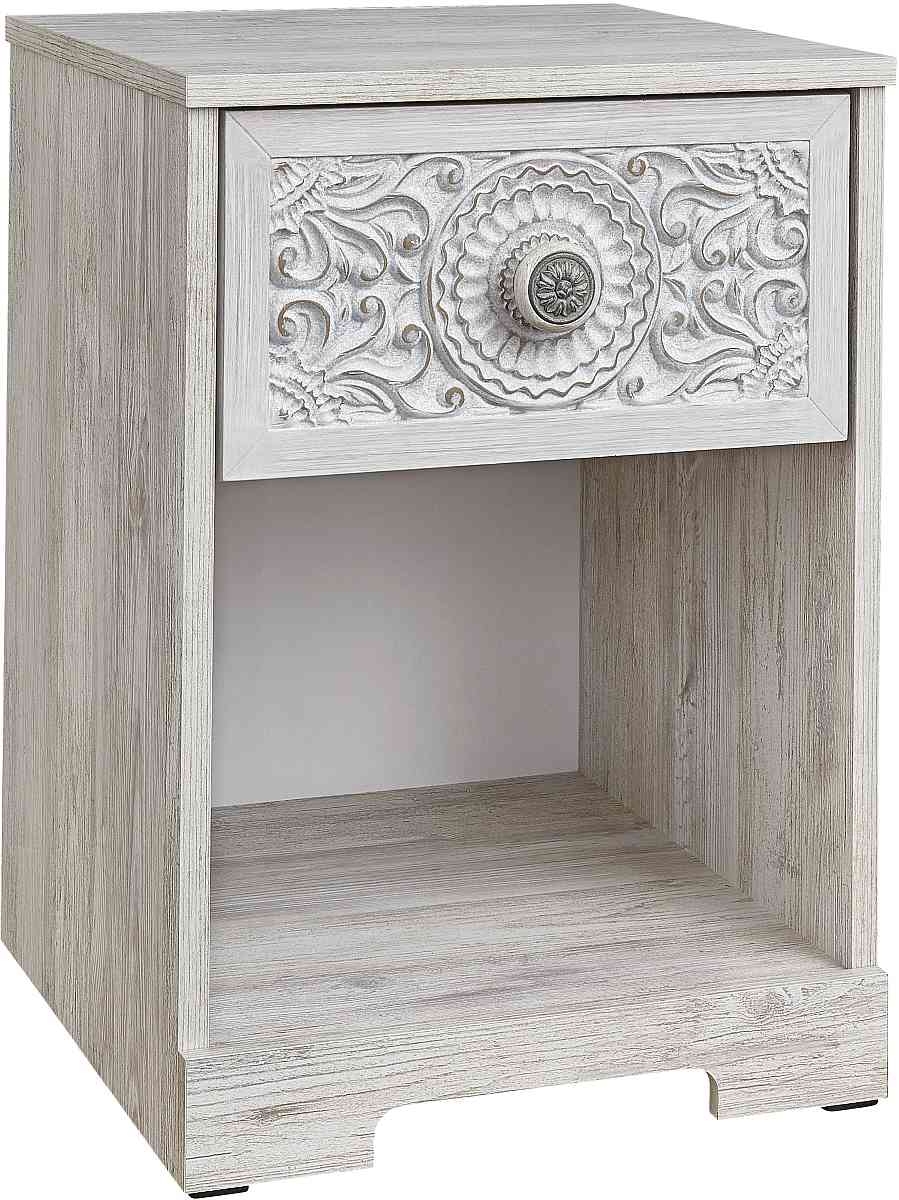 If it’s coastal chic or cottage quaint style you long for, this whitewashed nightstand invites you to go to town. Its distinctive weatherworn finish conveys an easy-breezy sensibility, perfect for a restful bedroom retreat. Rest assured, tastefully edited lines and medallion drawer pulls give this attractively priced nightstand a high-end aesthetic.