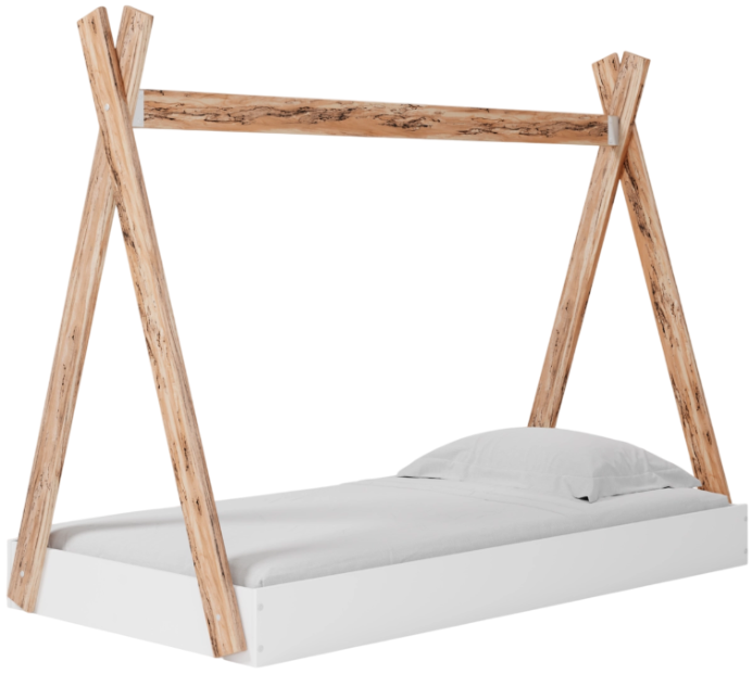 Adventure awaits with this twin tent complete bed in a box. The effortless blend of contemporary and casual styles creates an expressive two-tone look in matte white and replicated sugarberry wood grain pattern. This complete bed in a box requires no additional foundation, making it a functional, yet unique, addition to your home.Read More