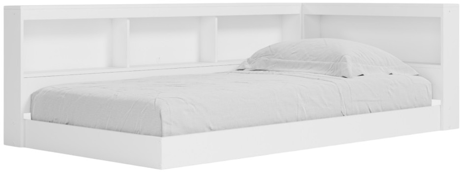 Includes bookcase storage with side and end rails
