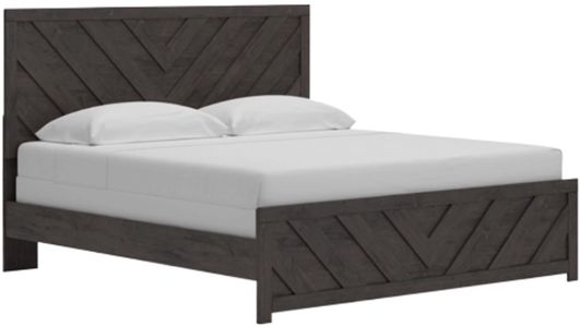 Designed with everyday style in mind, this king panel bed is a simply chic approach to modern living. A dark charcoal finish blends black and brown undertones to create a versatile look that effortlessly pairs with your existing pieces. And for an extra dash of trend-right style, the headboard is dressed in a playful chevron pattern.Read More