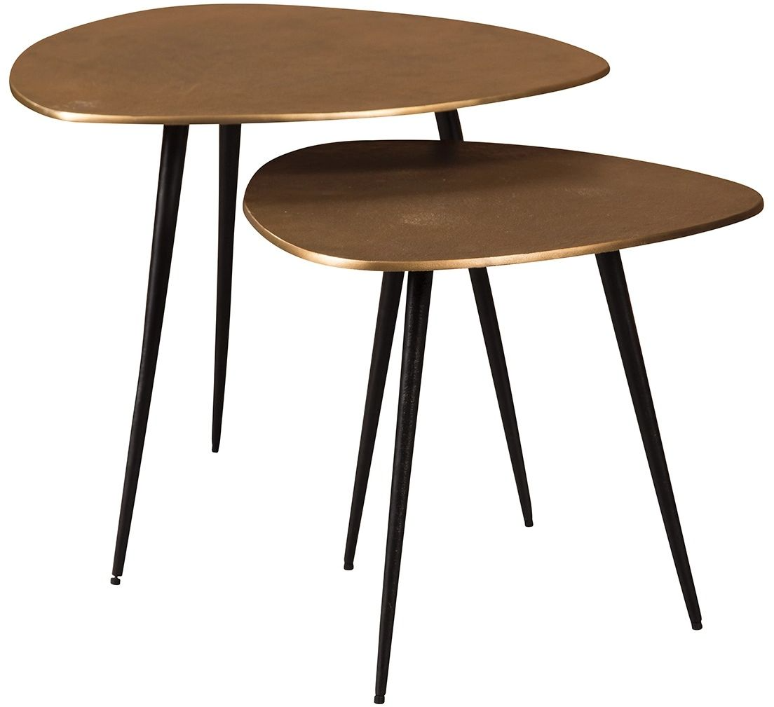 Beautifully in tune in contemporary places and mid-century inspired spaces, the Shemleigh 2-piece accent table set is music to your eyes. Rocking a two-tone brass-tone/black finish, these guitar pick tables crafted of cast aluminum make such a striking duo.