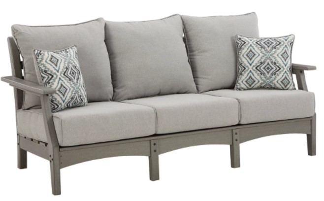 It’s the dawn of new day for gray. Embrace the style trend with this outdoor sofa. Crafted of HDPE material that combines the exceptional durability and weather resistance you need with the “wood look” you love, this comfortably cushioned sofa takes outdoor living to a whole new level. Rest assured, the thick seat and back cushions and throw pillows are wrapped in our exclusive Nuvella® high-performance fabric that’s fade resistant, stain resistant and a breeze to clean.